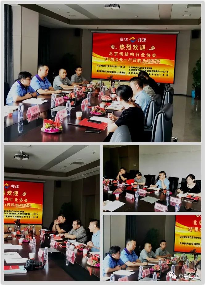 2020年7月25日上午,北京鋼結構行業(yè)協(xié)會會長胡勇、北京鋼結構行業(yè)協(xié)會秘書長常海君、北京鋼結構行業(yè)協(xié)會常務理事(北京華龍聯(lián)合建設工程有限公司董事長)王廣飛、北京鋼結構行業(yè)協(xié)會秘書處史君蒞臨京華兆建參觀考察。