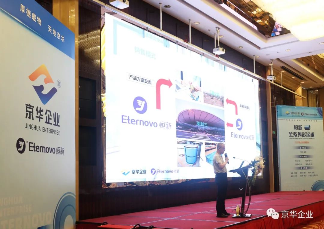 在接下來的一小時時間里,京華企業(yè)“恒新“品牌營銷副總李明曄先生,從企業(yè)實力和品牌定位,新型鋅鋁鎂基材以及全系列”恒新“彩涂產(chǎn)品線,”恒新“產(chǎn)品定制服務(wù)三方面向與會嘉賓做了全面的講解,全方位立體化向大家詳細(xì)闡述了”恒新“產(chǎn)品解決方案的獨特價值,以創(chuàng)新設(shè)計理念,幫助綠色建筑的節(jié)材,節(jié)水,節(jié)能,提升環(huán)境舒適度等各方面達成極大提升,以綠色理念幫助廣大客戶實現(xiàn)彩涂產(chǎn)品銷量的可持續(xù)增長。